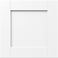 Our glacier white Laramie collection boasts cove-style doors with a premium