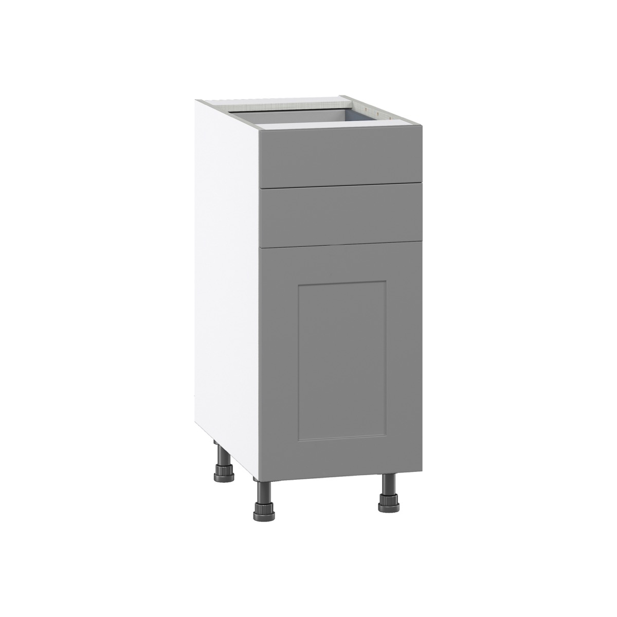 With a vast selection of fully-assembled cabinet types and sizes available, J COLLECTION helps you create your dream kitchen layout with ease. The frameless design of J COLLECTION cabinets offers a streamlined look with easier access to stored items. Each cabinet provides durability and longevity, with construction specifications that far exceed the industry standard. All cabinets feature durable, chip-resistant finishes in classic colors that are always in style. Storage is made easy with larger and deeper drawers, adjustable shelves and drawers that glide with ease. Unique to J COLLECTION, base cabinets include pre-attached adjustable legs, making installation and leveling a simple process.