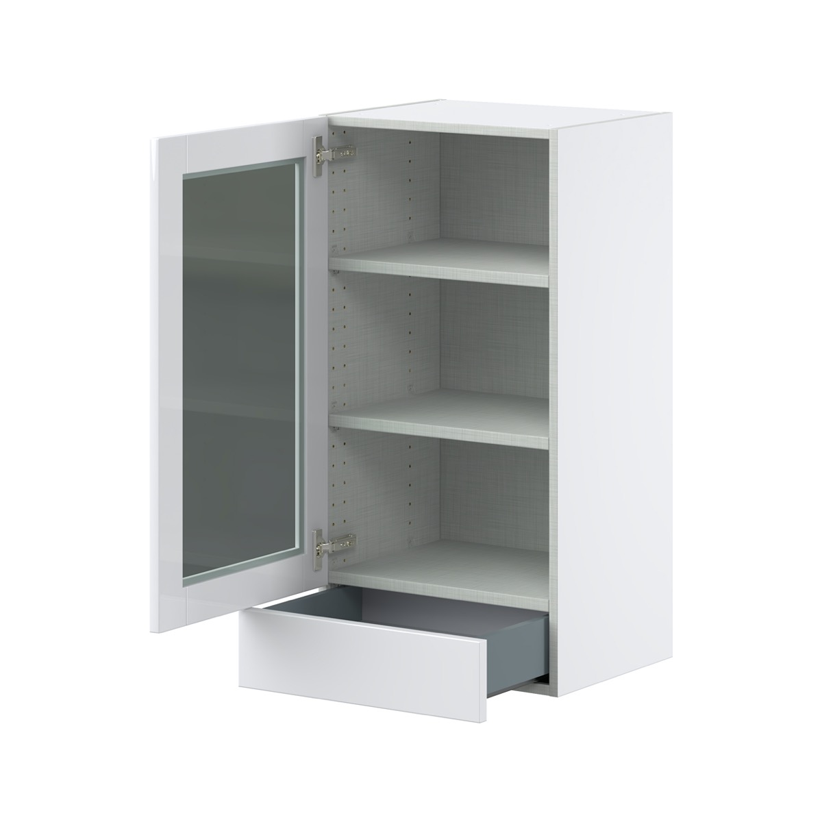 Bright White Shaker Assembled Wall Kitchen Cabinet with Glass Door and 2-Drawer (18 in. W x 35 in. H x 14 in. D)