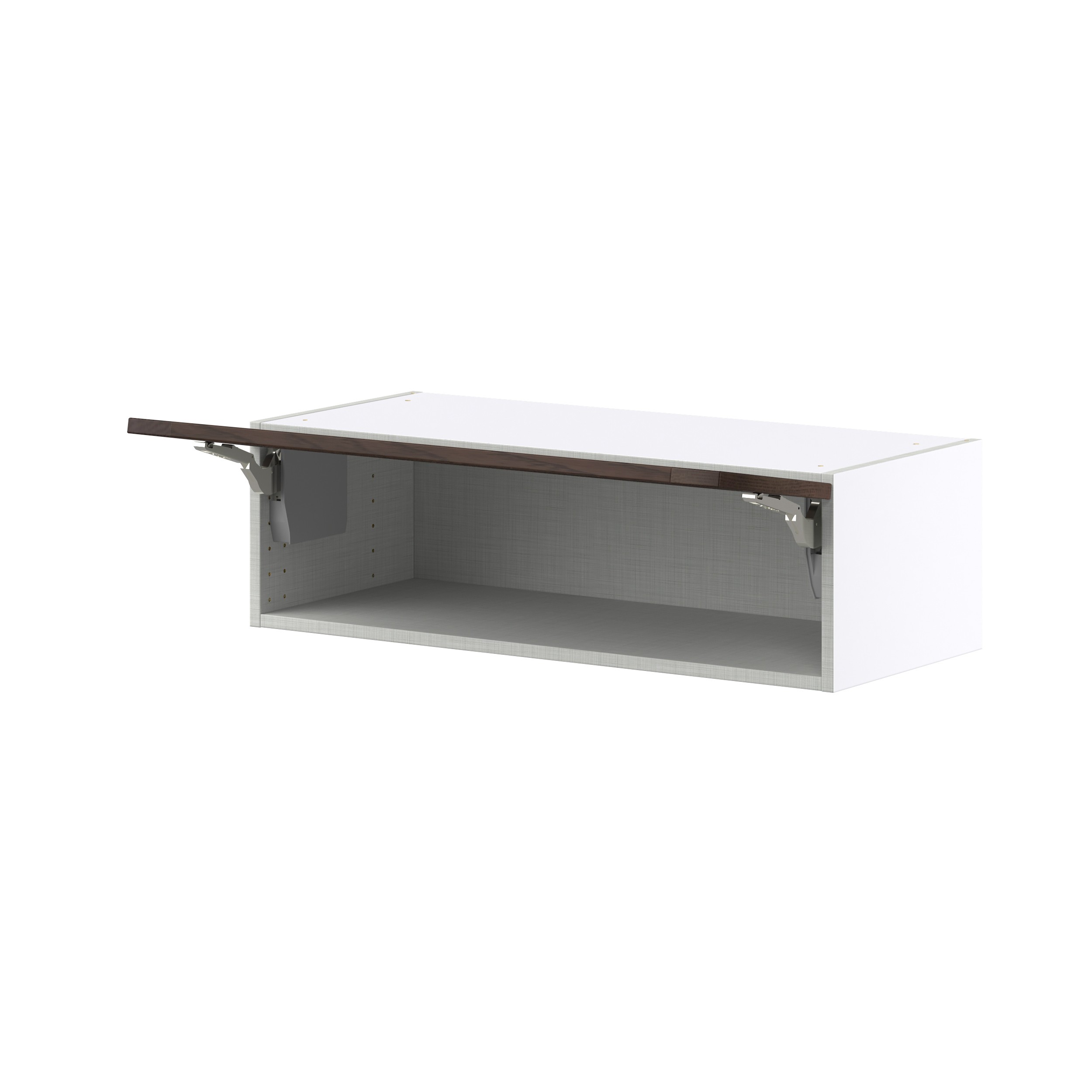 - Doors pivot up and out of the user's way, requires very little space above the cabinets