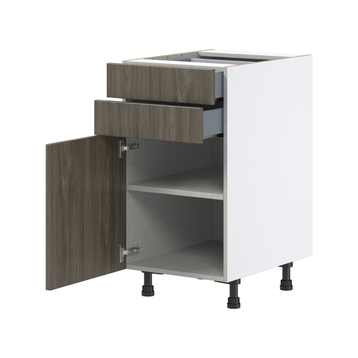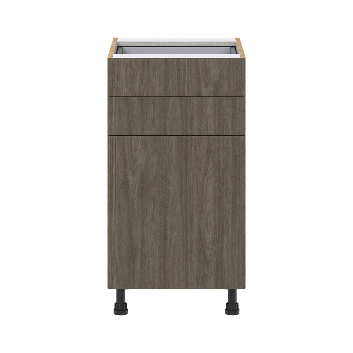 With a vast selection of fully-assembled cabinet types and sizes available, J COLLECTION helps you create your dream kitchen layout with ease. The frameless design of J COLLECTION cabinets offers a streamlined look with easier access to stored items. Each cabinet provides durability and longevity, with construction specifications that far exceed the industry standard. All cabinets feature durable, chip-resistant finishes in classic colors that are always in style. Storage is made easy with larger and deeper drawers, adjustable shelves, and drawers that glide with ease. Unique to J COLLECTION, base cabinets include pre-attached adjustable legs, making installation and leveling a simple process.