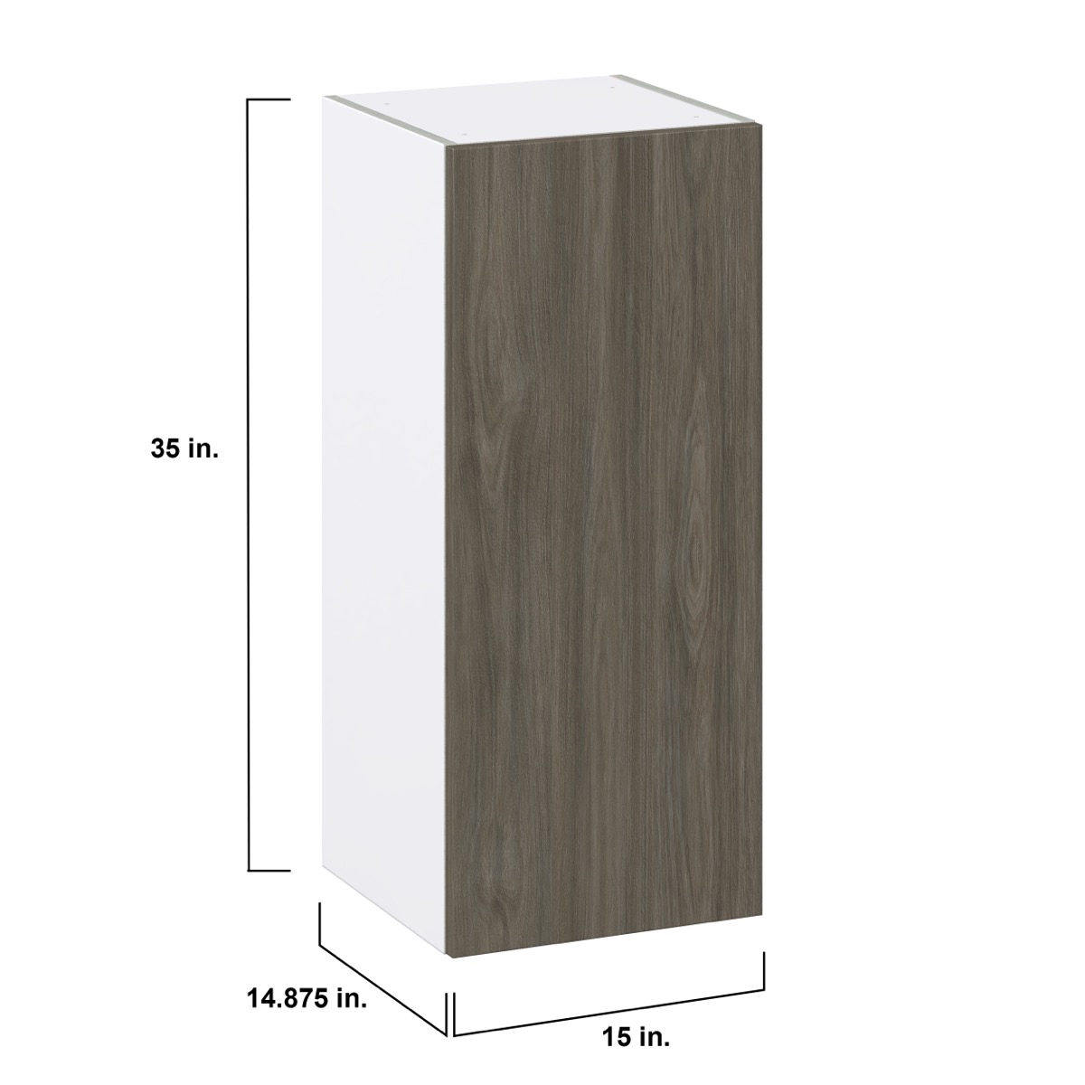 Medora textured Slab Walnut Assembled Wall Kitchen Cabinet with Full Height Door (15 in. W x 35 in. H x 14 in. D)