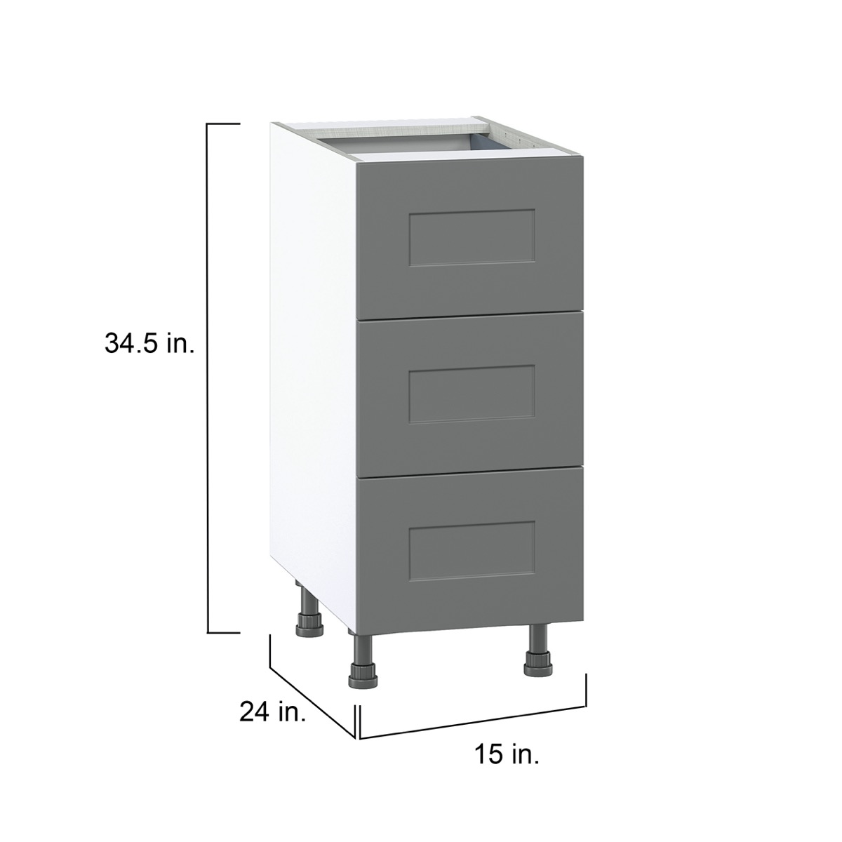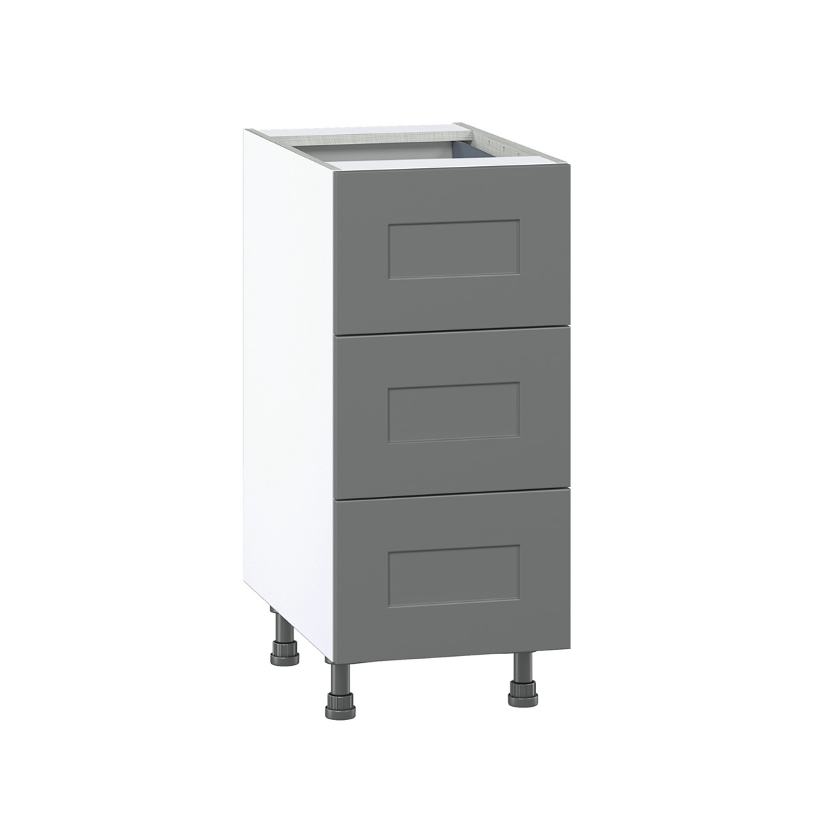 With a vast selection of fully-assembled cabinet types and sizes available, J Collection helps you create your dream kitchen layout with ease. The frameless design of J Collection cabinets offers a streamlined look with easier access to stored items. Each cabinet provides durability and longevity, with construction specifications that far exceed the industry standard. All cabinets feature durable, chip-resistant finishes in classic colors that are always in style. Storage is made easy with larger and deeper drawers, adjustable shelves, and drawers that glide with ease. Unique to J Collection, base cabinets include pre-attached adjustable legs, making installation and leveling a simple process.